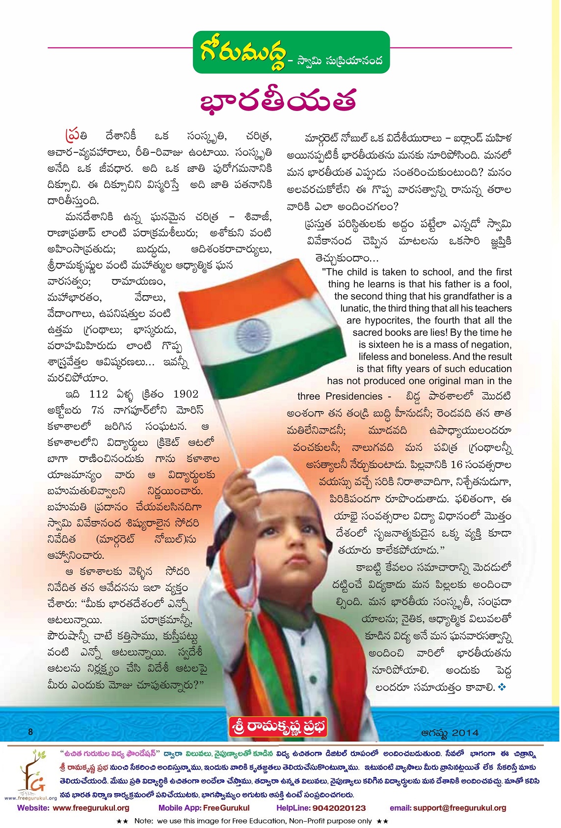 ఉచిత గురుకుల విద్య ఫౌండేషన్ ( విలువలు, నైపుణ్యాలతో కూడిన విద్య డిజిటల్ రూపంలో)