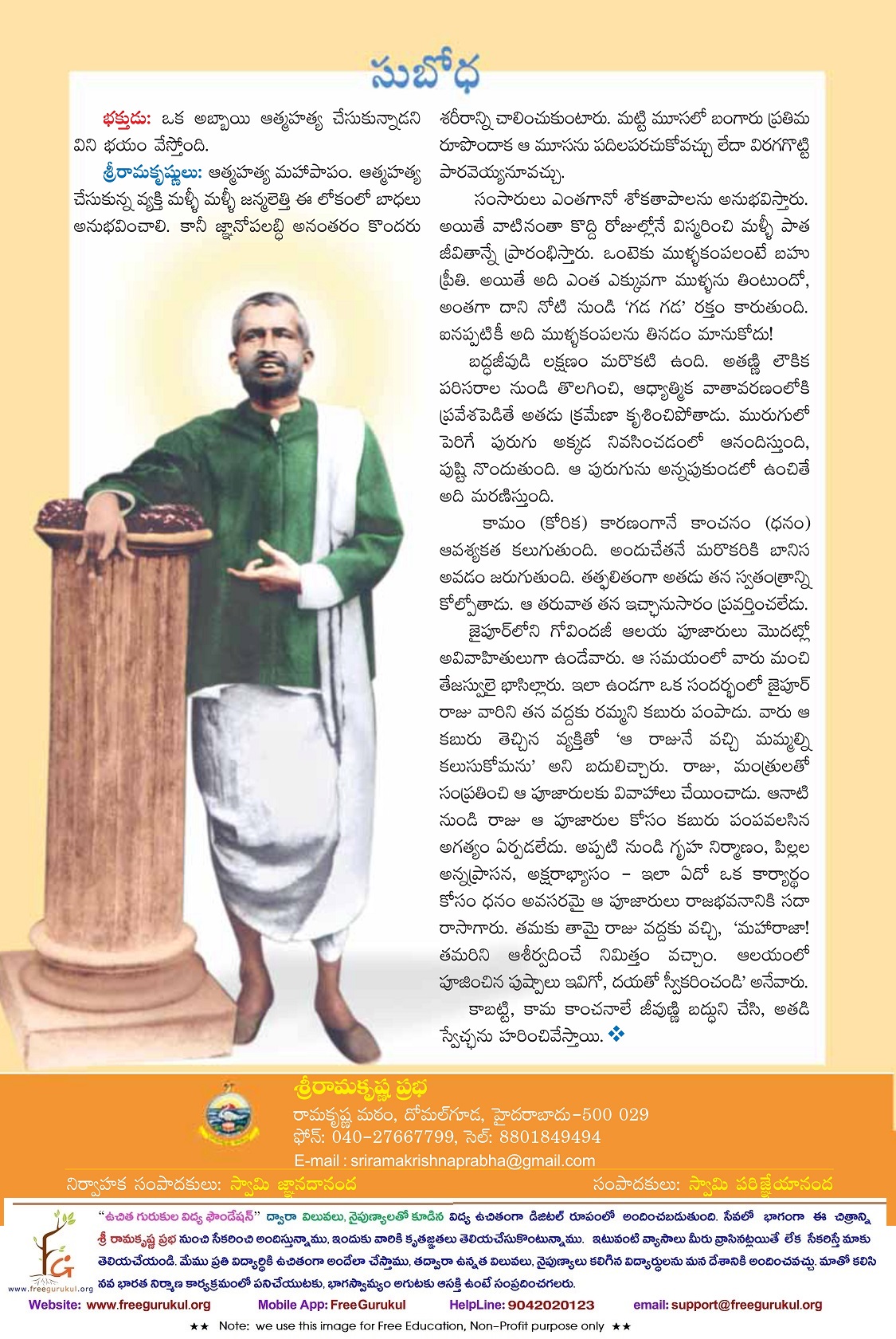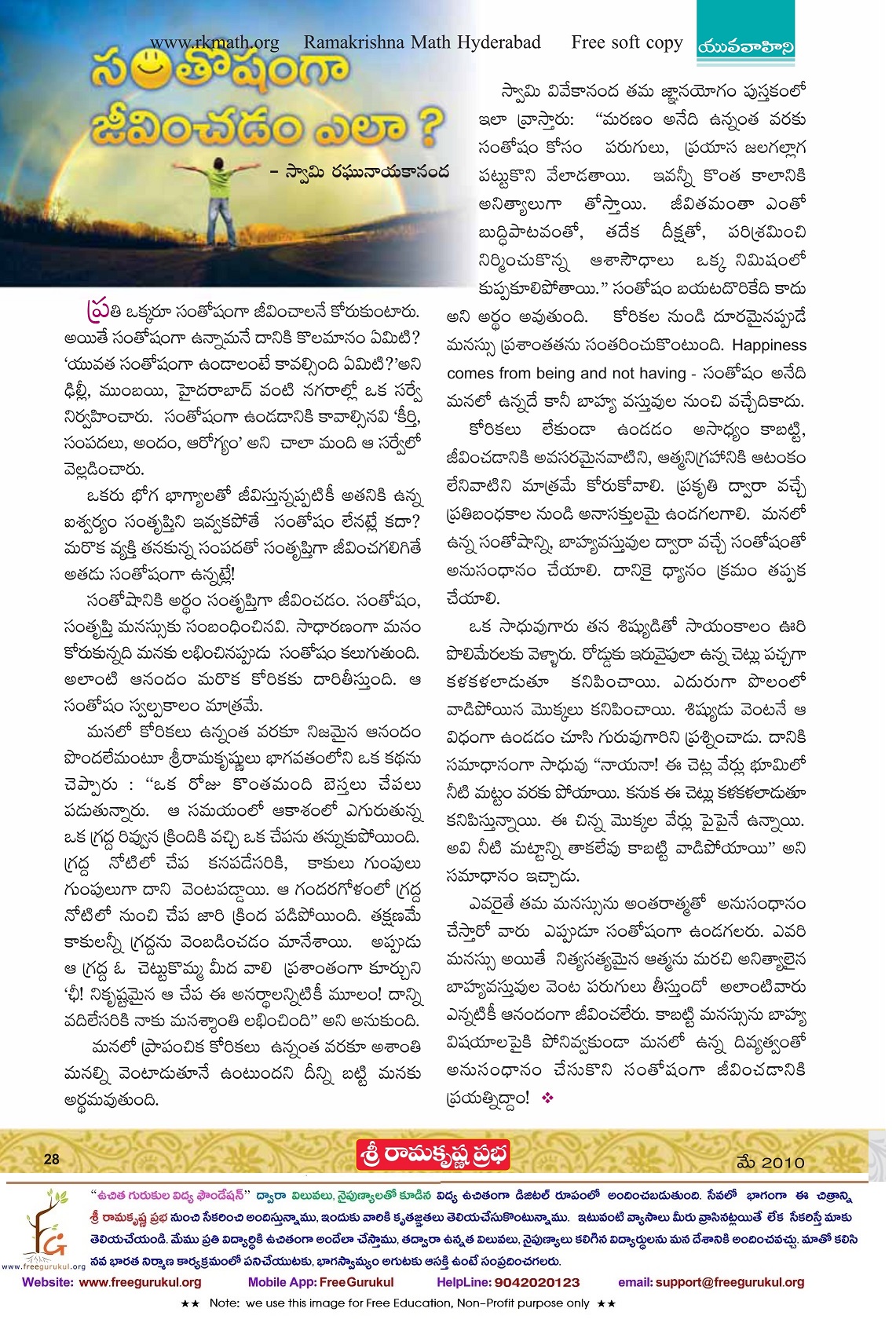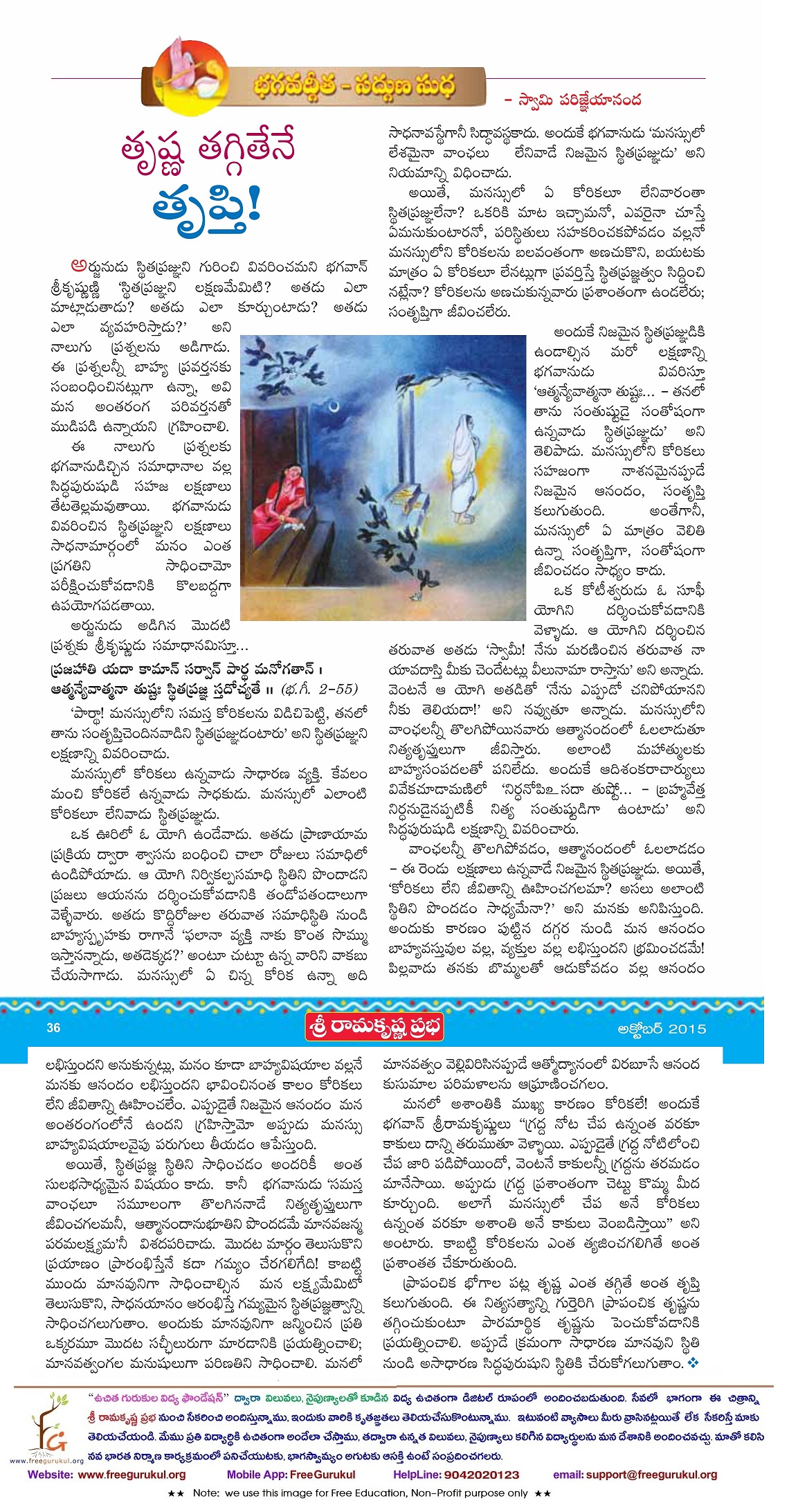 మనస్సులోని కోరికలు సహజంగా నాశనం అయినప్పుడే నిజమైన సంతృప్తి కల్గును అంతేగాని అణచుకోవటం వలన సంతృప్తి రాదు