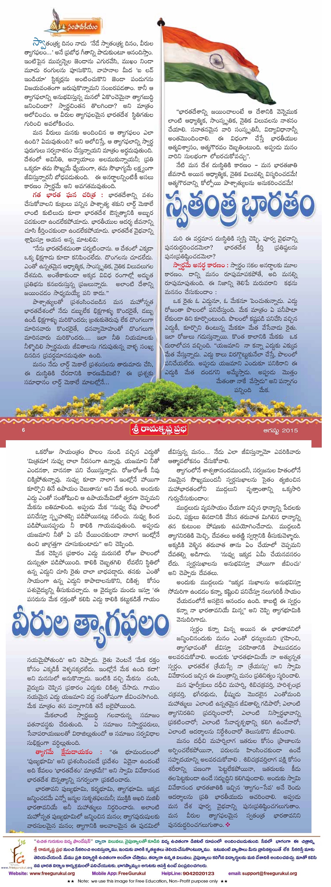 వీరుల త్యాగం వలనే స్వాతంత్ర్యం - స్వార్ధం వలన స్వాతంత్ర్యం రాదు