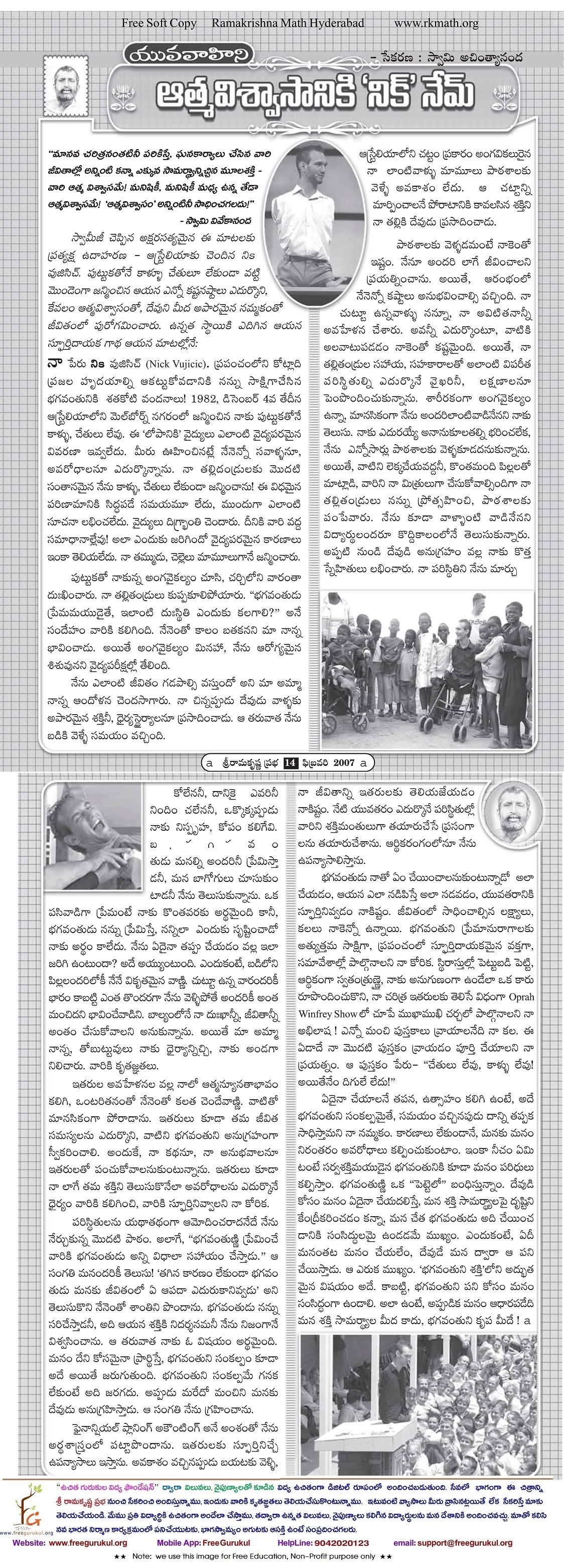 ఆత్మవిశ్వాసానికి ఓ నిప్పుకణకం - వైకల్యం అనగా భగవంతుడు ఇచ్చే పని కోసం సిద్దం గా ఉండు