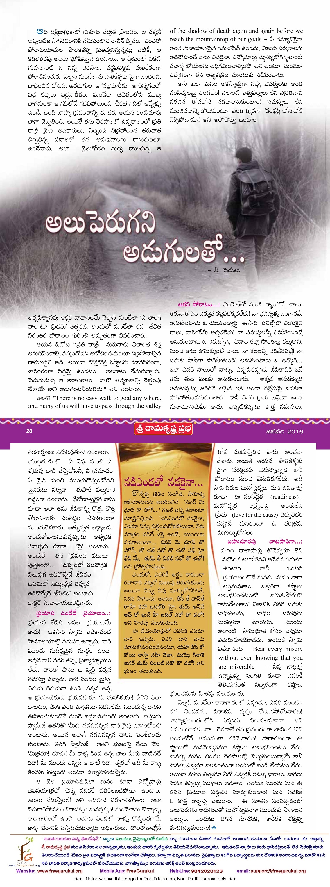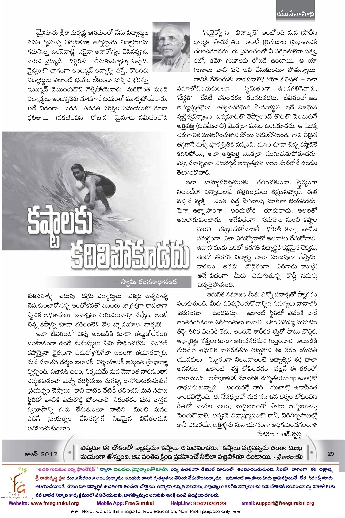 జీవిత ప్రయాణం అంత సులభమైనది కాదు-ఎప్పటికప్పుడు క్రొత్త సమస్యలు వస్తూ ఉంటాయి-గత అనుభవాలు పరిశీలిస్తే ధైర్యం కలుగును-లక్ష్యం పై అత్యుత్తమ ప్రేమ అనేది కష్టాలను ఓర్చుకొనేలా చేయును