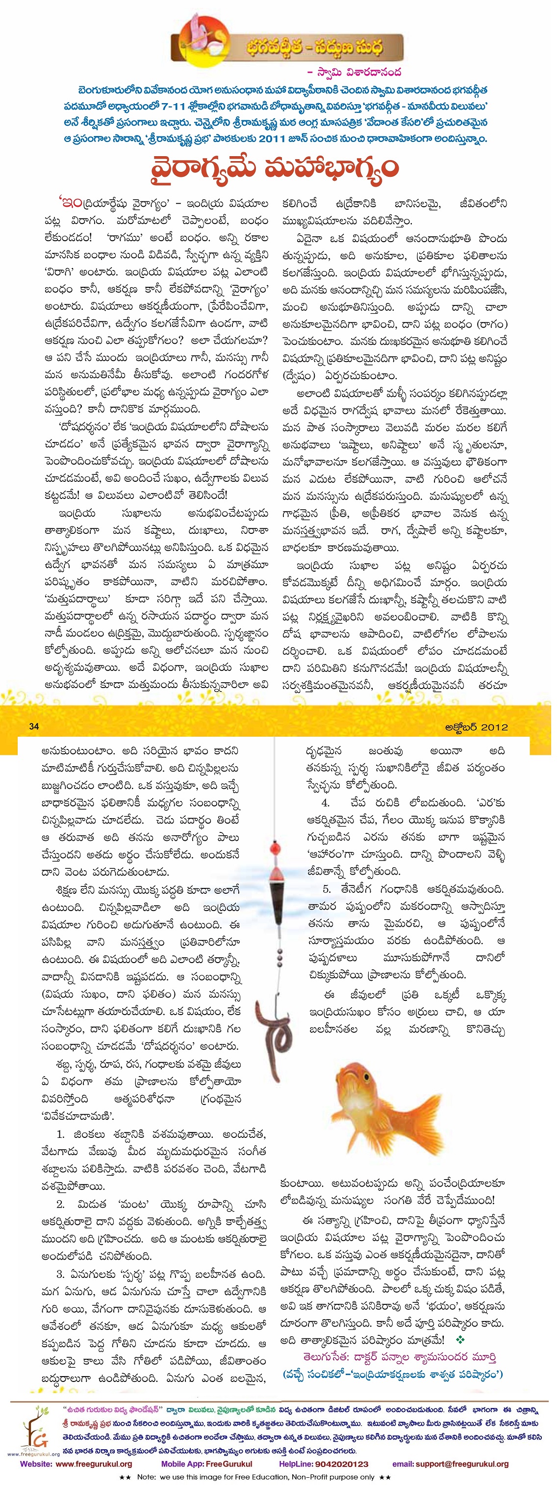 వైరాగ్యమే మహాభాగ్యం - దోషదర్శనం ద్వారా - ఆ ఆకర్షణ ఎంత ప్రమాదకరమైనదో అని గుర్తించటం ద్వారా?