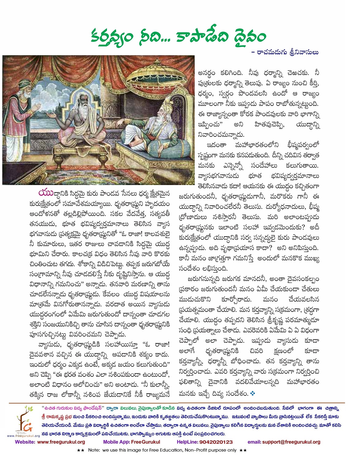 జరుగనున్నది జరుగక మానదు అని అంతా దైవ సంకల్పం అని చేతులు ముడుచుకు కూర్చోరాదు-మనం చేయవలసిన కర్తవ్యం చేయాలి