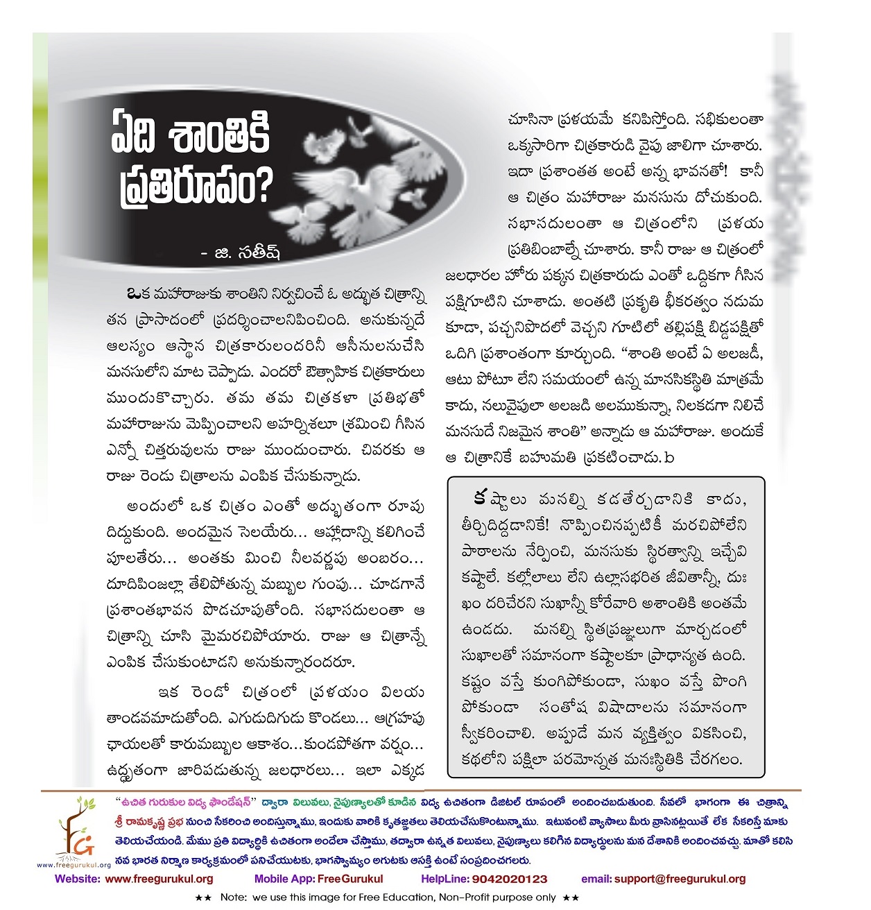 శాంతి అంటే ఏ అలజడి లేని సమయంలో ప్రశాంతంగా ఉండటం కాదు-నలువైపుల అలజడి అలముకొన్నా నిలకడగా నిలిచే మనసుదే నిజమైన శాంతి