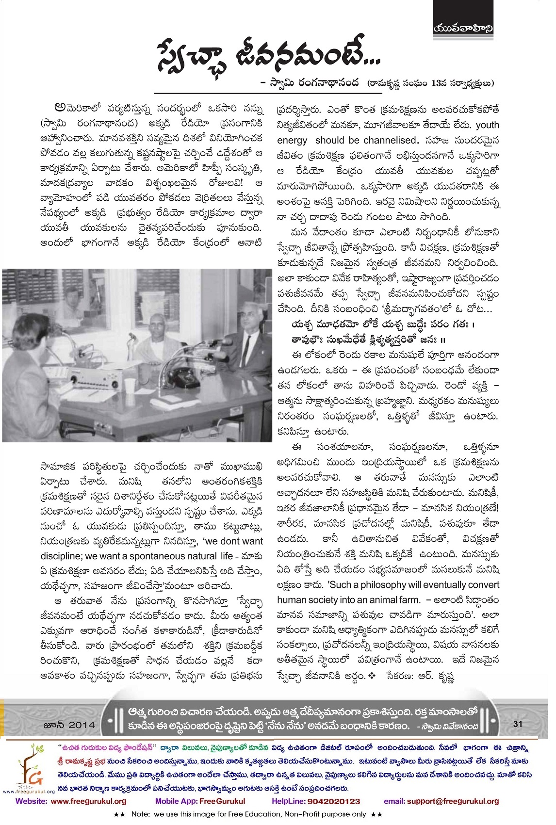 స్వేఛ్చ అంటే విచ్చలవిడిగా జీవించటమా లేక శక్తిని క్రమశిక్షణతో వినియోగించి ప్రతిభను మెరుగుపరచుకోవటమా?